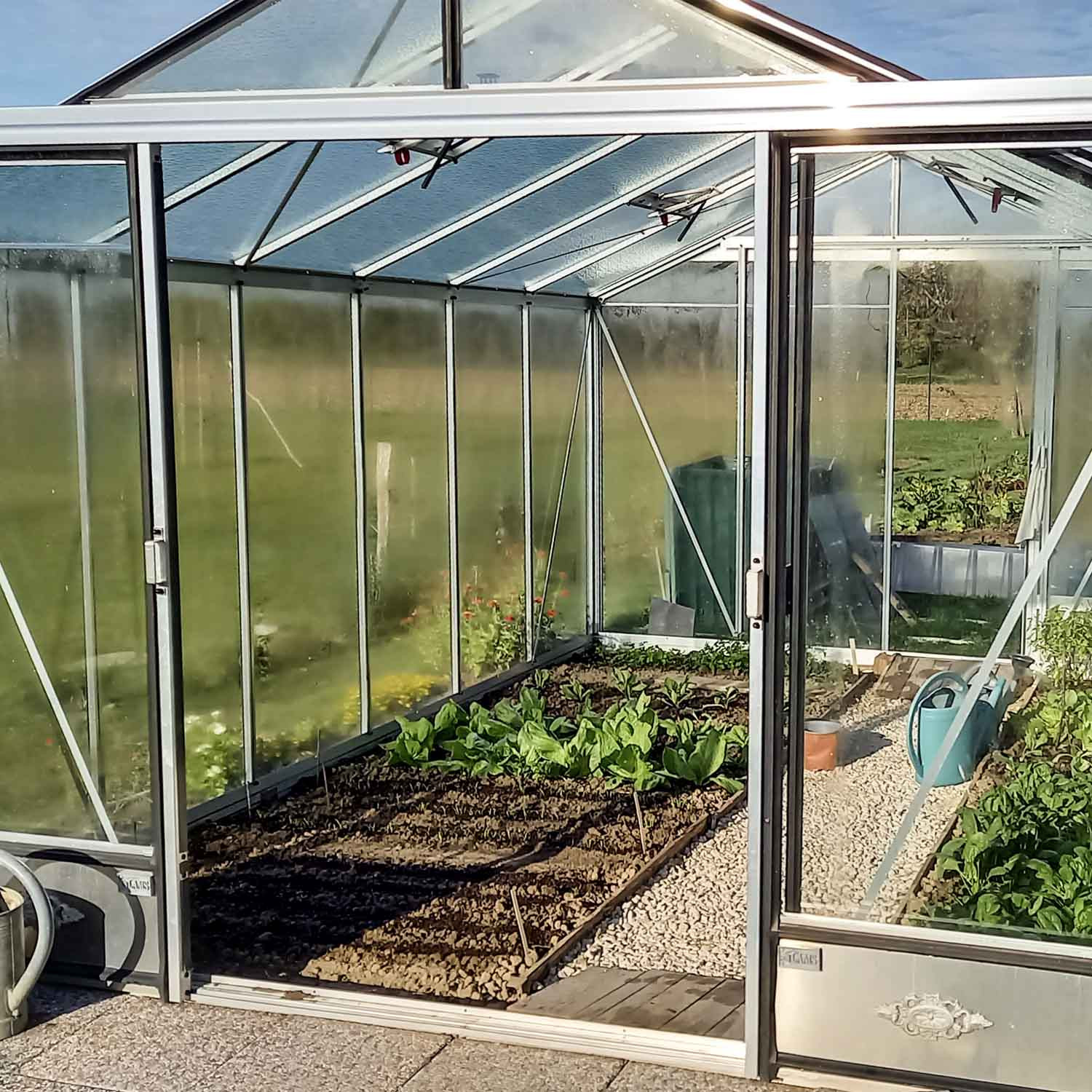 Les deux dernières solutions d'implantation vous permettent de cultiver vos légumes et plantes en pleine terre, à l'abri sous votre serre.